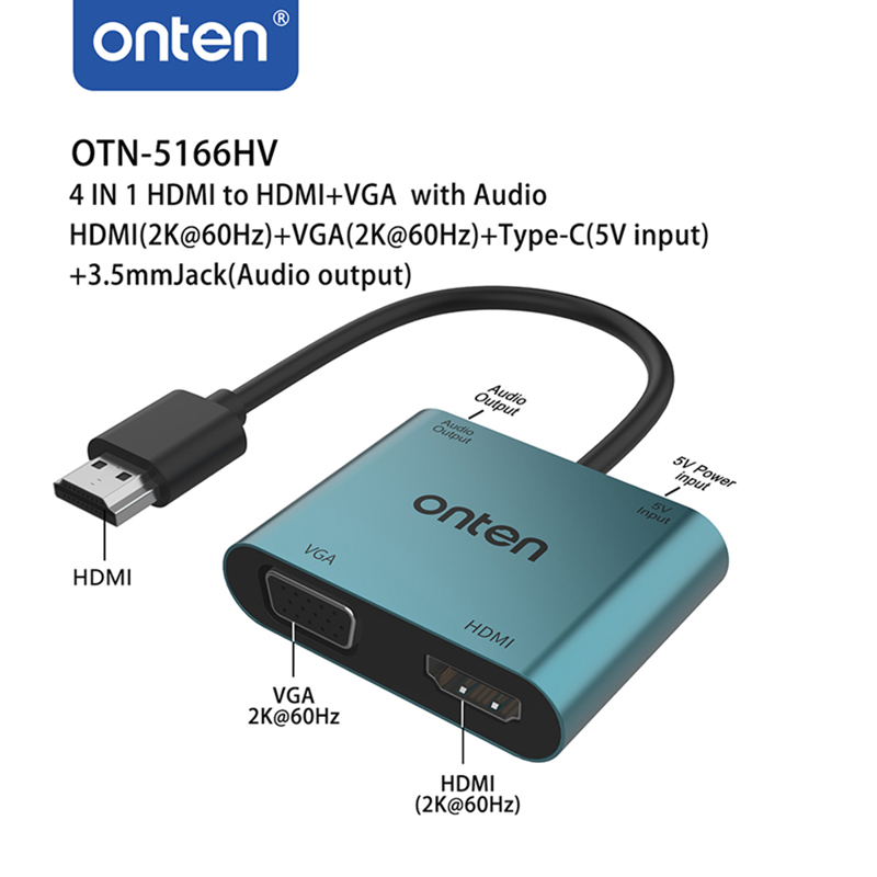 Adapter 4u1 HDMI 2K 30Hz na HDMI 2K 60Hz + VGA 2K 60Hz + USB Type-C 5V + jack 3.5mm 17cm (OTN-5166HV) Onten