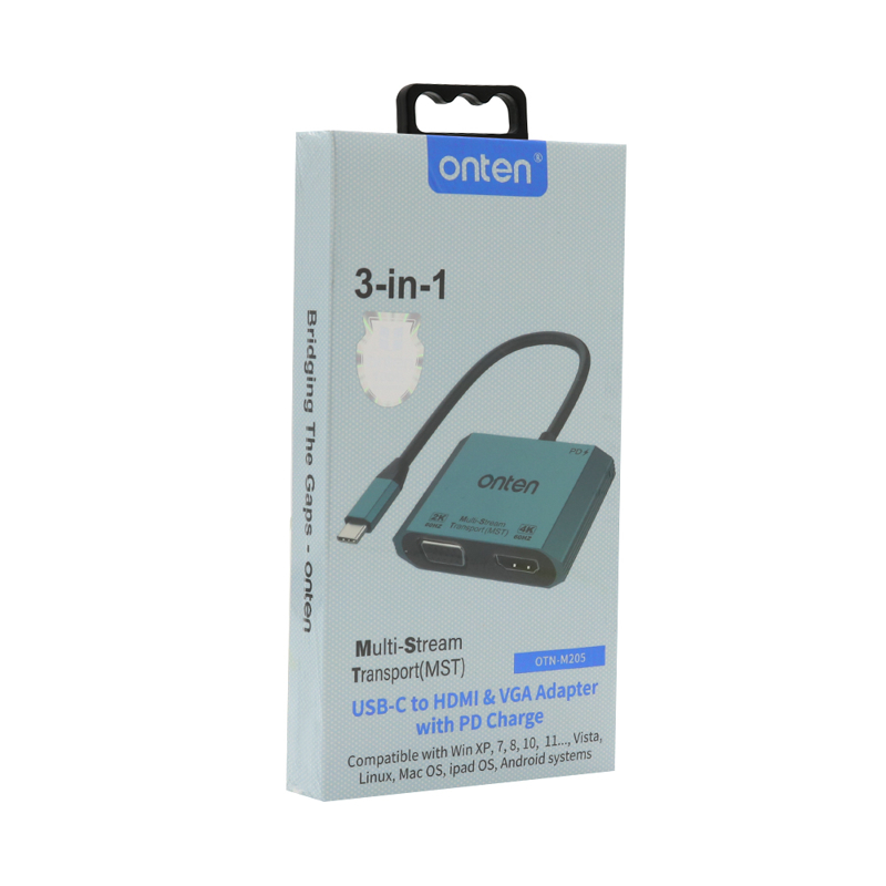 Adapter USB Type-C na HDMI (zenski) 4K 60Hz + VGA (zenski) 2K 60Hz 16cm (OTN-M205) Onten