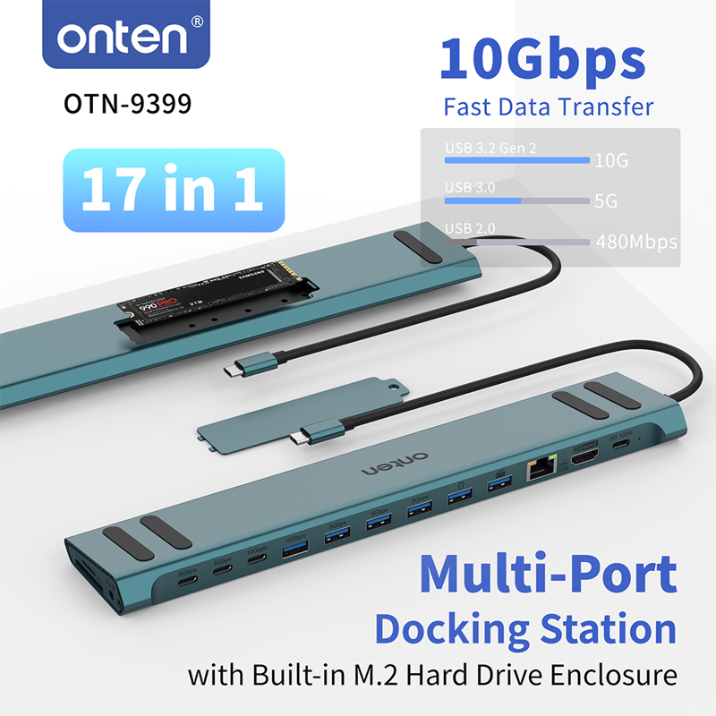 Dock stanica multifunkcionalna USB Type-C 17u1 sa prikljuckom M.2 SSD (OTN-9399) Onten