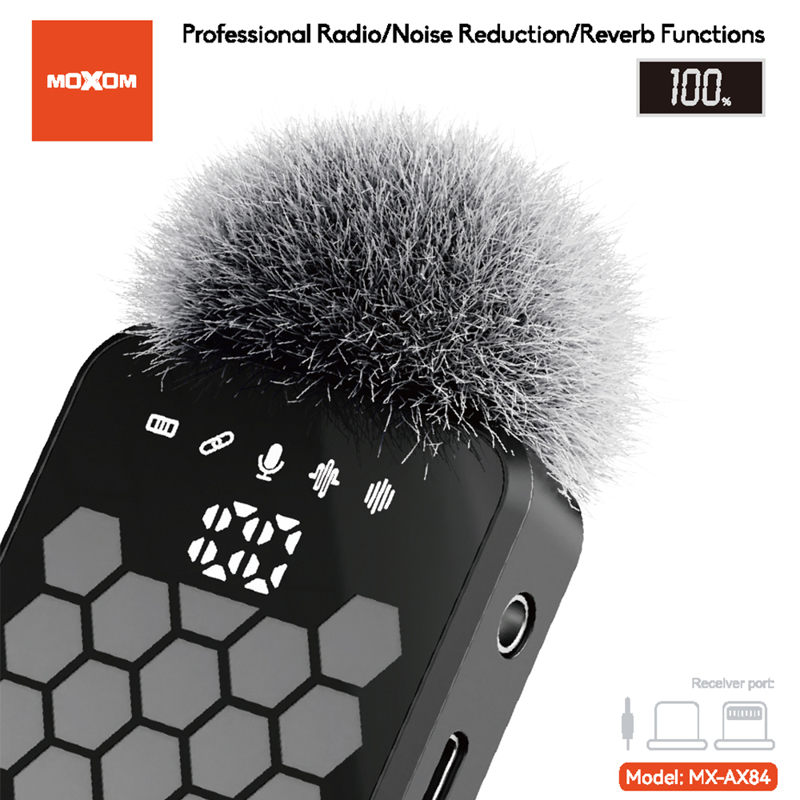 Mikrofon bluetooth Moxom MX-AX84 Type-C + lightning + 3.5mm jack crni