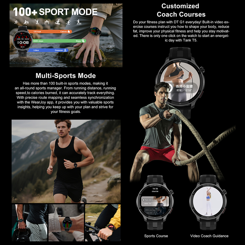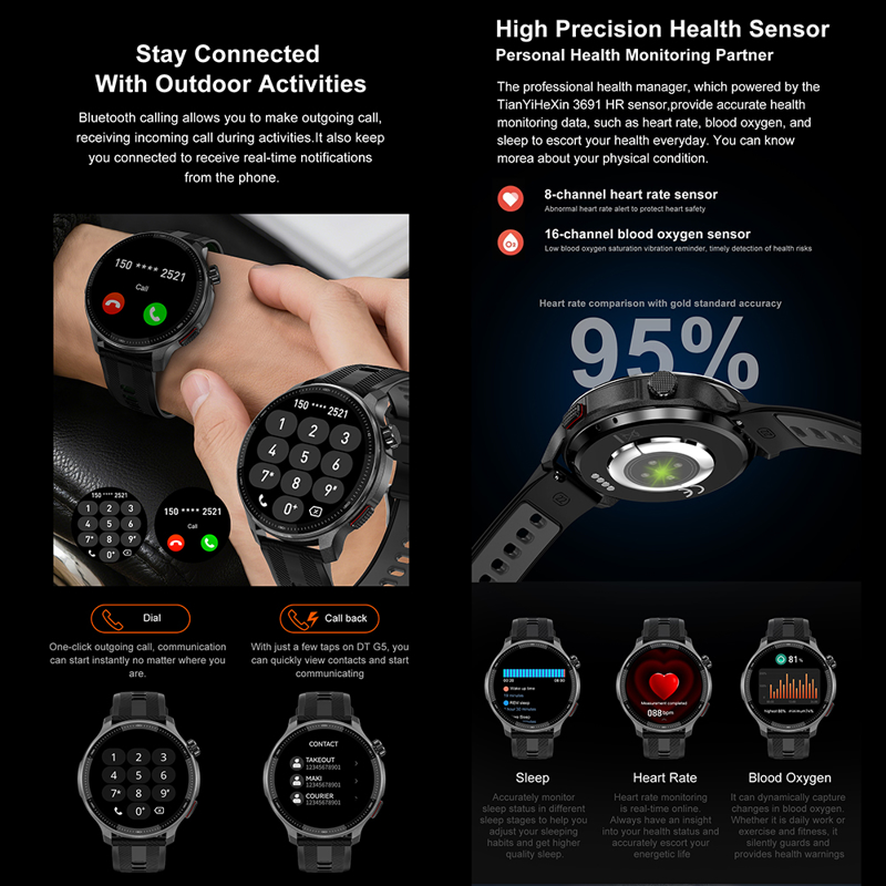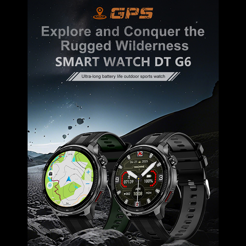 Smart Watch DT G6 GPS crni (silikonska narukvica crna i narandzasta)