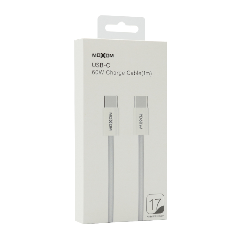 USB data kabal MOXOM MX-CB369 pleteni Fast 60W 3A Type-C na Type-C 1m beli