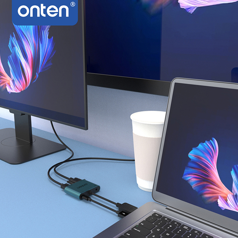Adapter 4u1 HDMI 2K 30Hz na HDMI 2K 60Hz + VGA 2K 60Hz + USB Type-C 5V + jack 3.5mm 17cm (OTN-5166HV) Onten