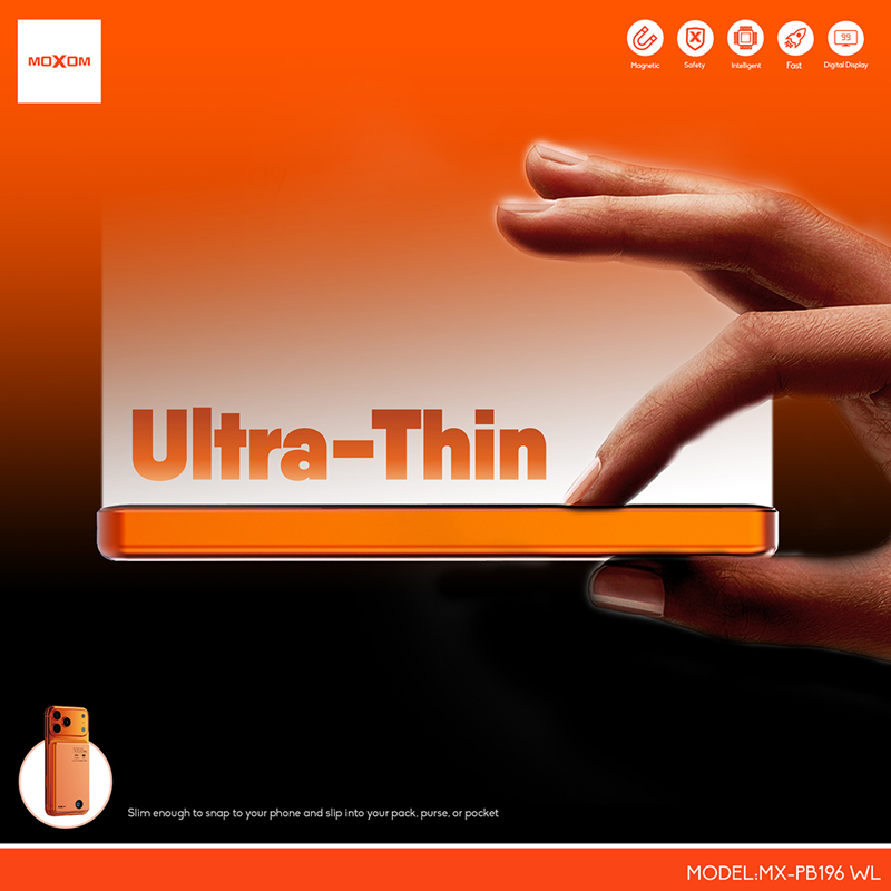Power Bank Magsafe Moxom MX-PB196 PD 20W + QC 22.5W + wireless 15W 5000mAh narandzasti