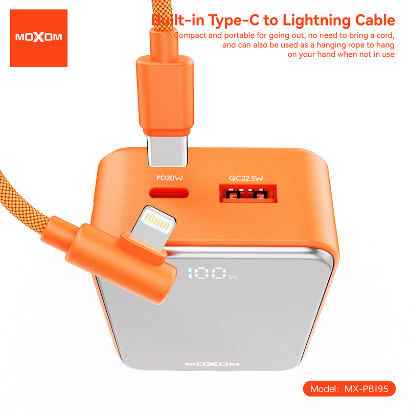 Power Bank Moxom MX-PB195 Mini fast 22.5W Type C - lightning 10000mAh sivi
