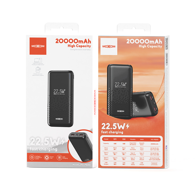 Power Bank Moxom MX-PB203 fast PD20W + SCP22.5W 20000mAh crni