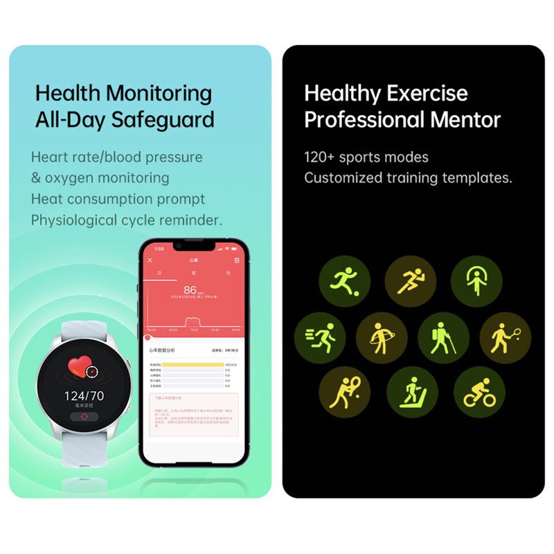 : Bluetooth pozivi, višestruki sportski režimi rada, merenje otkucaja i krvnog pritiska, merenje nivoa zasićenosti krvi kiseonikom (SpO2), menstrualni kalendar, podsetnik za dugo sedenje, upravljanje kamerom, upravljanje muzikom, alarm