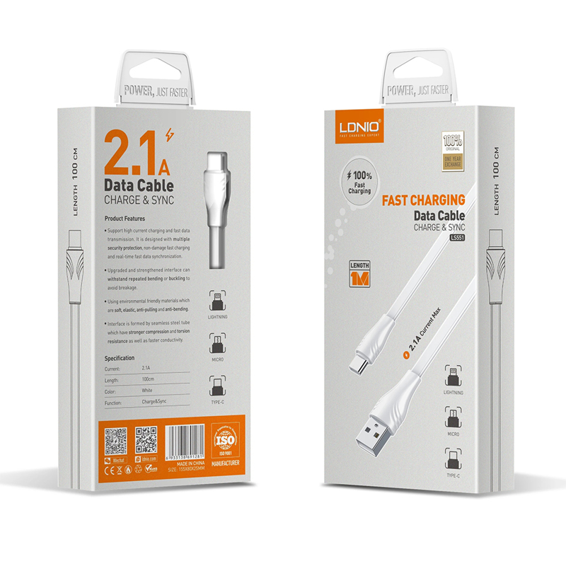 USB data kabal LDNIO LS551 2.1A Type-C 1m beli